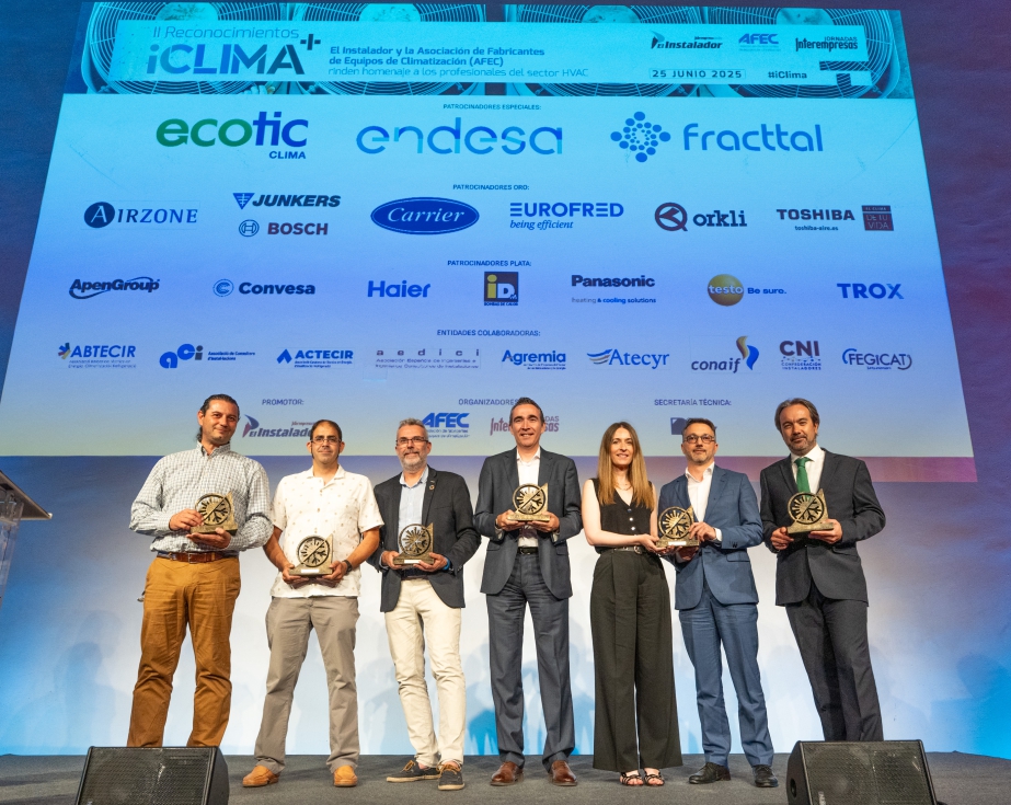 La Fundación Real Fábrica de Tapices de Madrid acogió la noche del 25 de junio de 2025 la entrega de los II Reconocimientos iClima, una cita que se consolida como referente en el sector HVAC. Organizados por la Asociación de Fabricantes de Equipos de Climatización (Afec) y la Revista El Instalador, estos galardones vuelven a […]