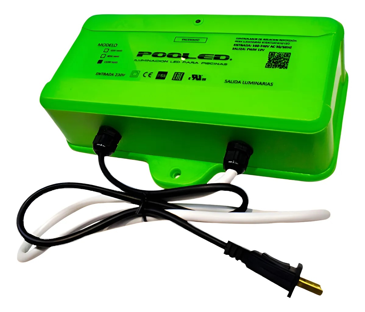 El controlador actúa como un transformador de aislación reforzada, tomando la entrada de 220V y suministrando una salida segura de 12Vdc, lo que garantiza la seguridad eléctrica en el entorno acuático. Su diseño electrónico incluye una doble aislación para protección extra.