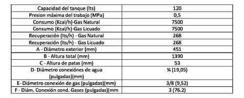 SHERMAN – TERMOTANQUE B.C. MULTIGAS DE PIE 120 LTS.