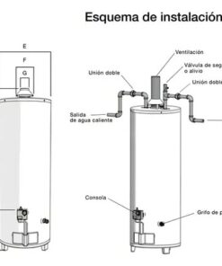 El tanque interno cuenta con recubrimiento vitrificado que lo protege contra la corrosión y prolonga su vida útil. Además, incorpora válvula de seguridad, encendido piezoeléctrico y piloto de seguridad, asegurando un uso cómodo y seguro en el día a día.