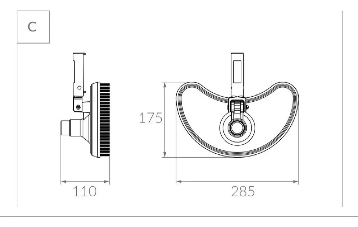 El modelo medialuna liviano posee cepillos de polipropileno fijos, su diseño y peso lo transforman en la mejor opción para limpiar escaleras y formas irregulares, resulta óptimo para piscinas pequeñas/medianas.